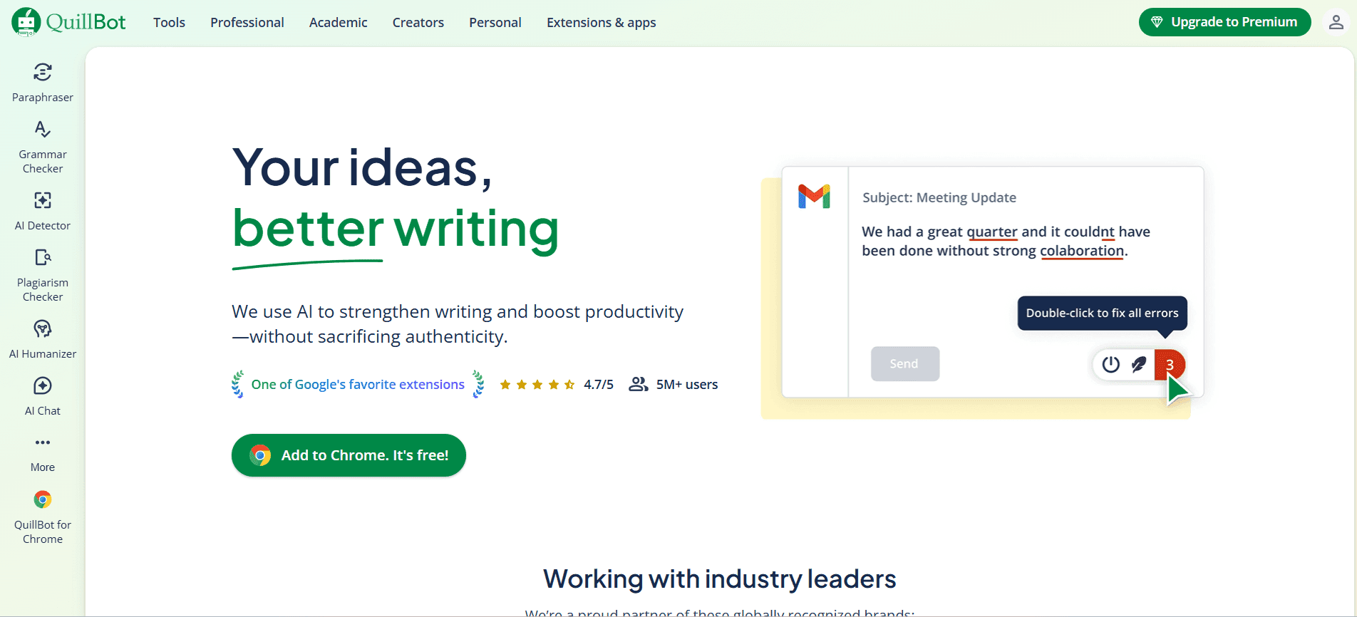 AI Writing & Research Tools | Grammarly | Web | Grammar correction, tone suggestions, and writing clarity |