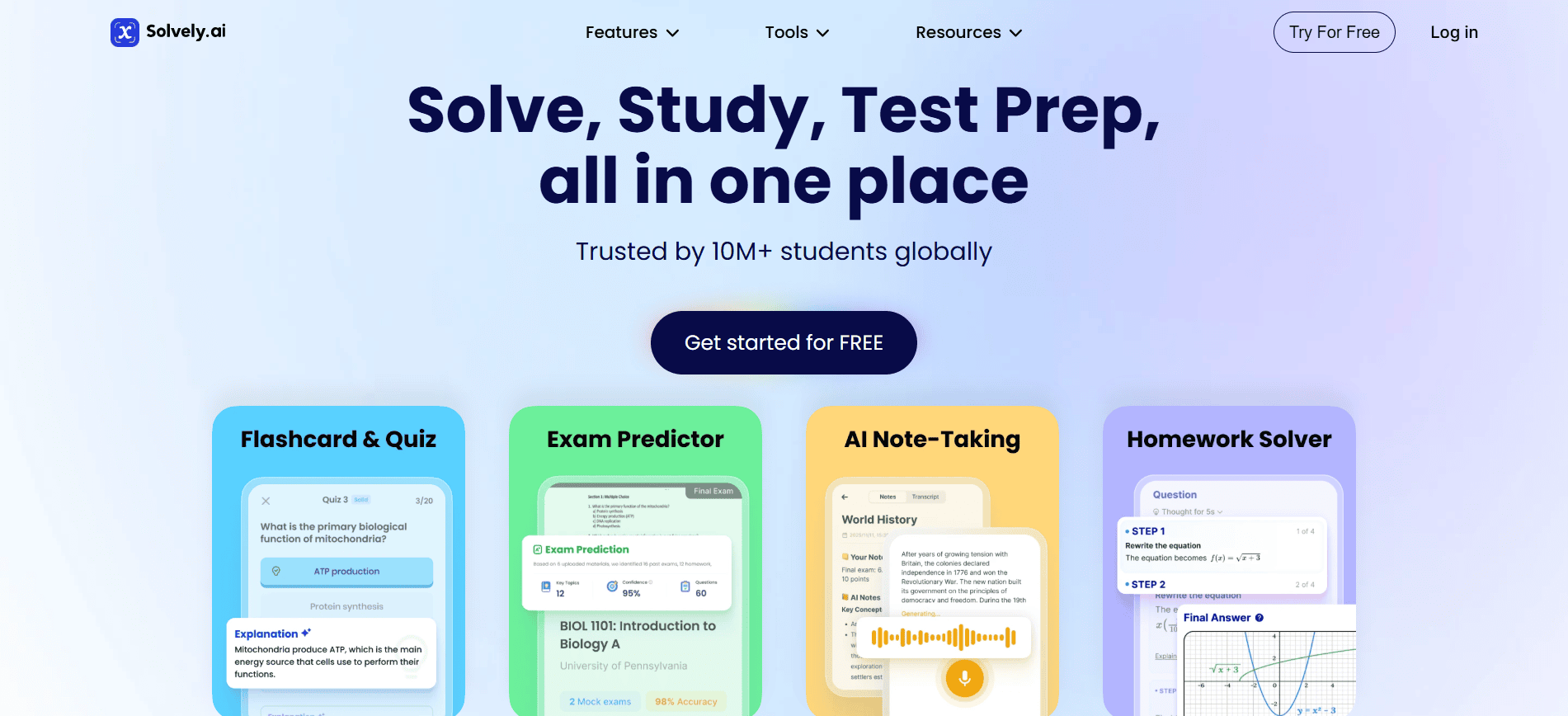 Solvely is an AI tool for students that lets you take a photo of a problem and receive detailed solutions. It is especially useful for math and science subjects. If you prefer visual input instead of typing long problems, this can be a perfect study companion for you.