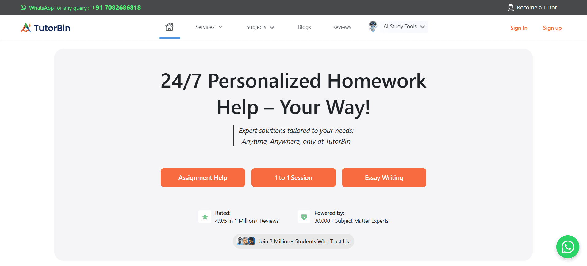 AI Tools for Homework & Academic Help | TutorBin | Web, Android, iOS | Homework help, tutoring support, step-by-step solutions |