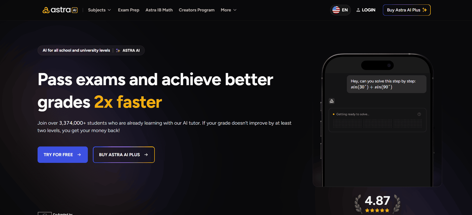 AI Study & Exam Preparation | Astra AI | Web, iOS, Android | AI tutoring, concept explanations, practice tests |