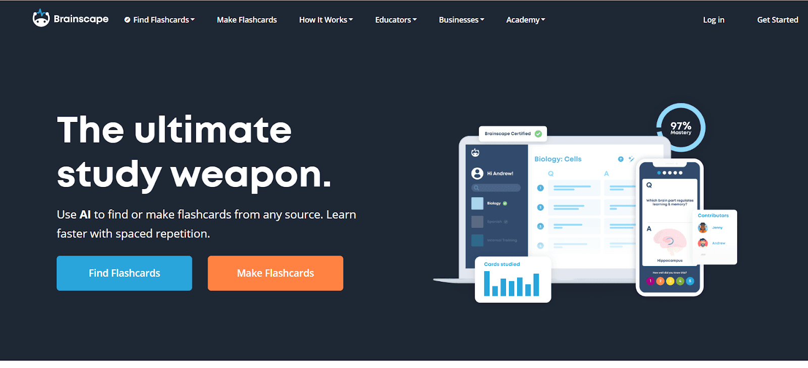 Brainscape uses cognitive science principles to improve retention through spaced repetition. It supports long-term retention of high-volume material.