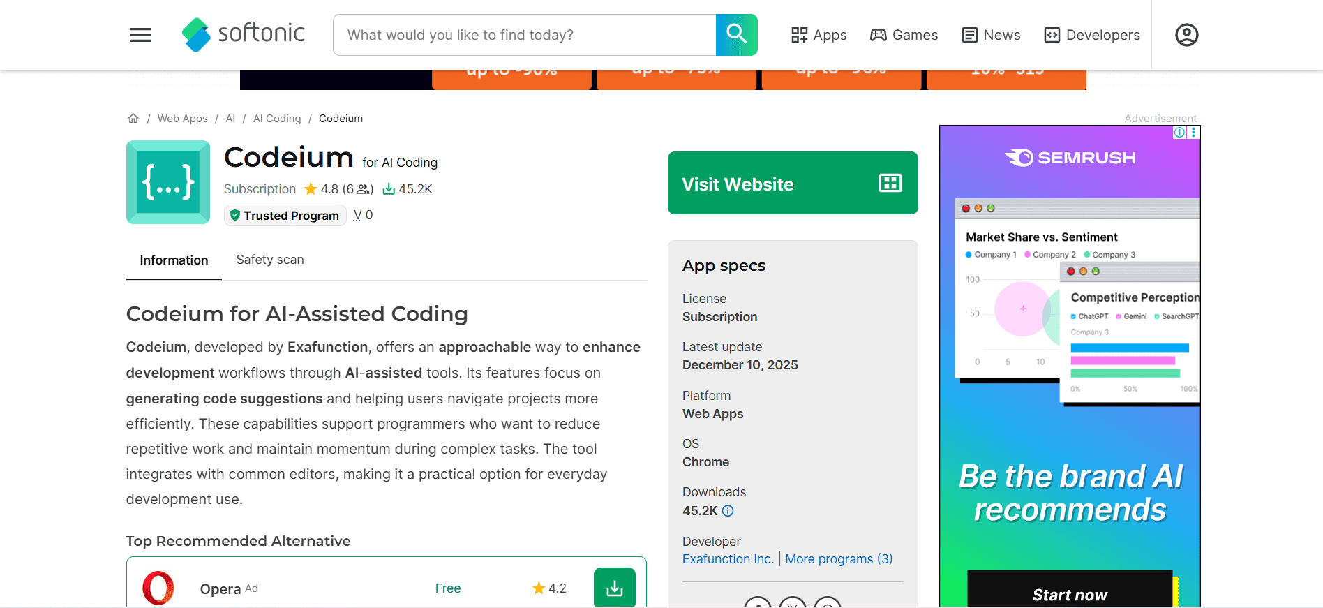 Codeium is an AI coding assistant that helps with autocomplete, code generation, and quick coding guidance inside your editor. Engineering students can use it for day-to-day lab assignments, small utilities, and experimenting with ideas without breaking focus to search online every few minutes. It is useful when you need speed and clarity, especially in semesters where you have multiple coding-heavy subjects. It also helps when you are working inside a bigger codebase and want faster navigation and suggestions.