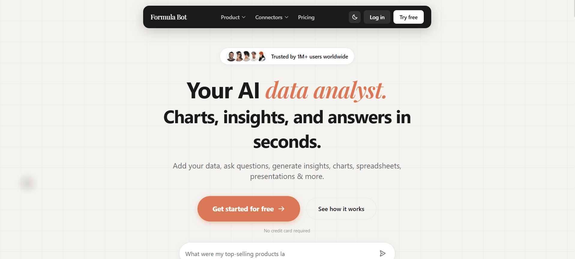 Formula Bot is an AI data analysis assistant that helps you work with data using natural language. Engineering students can use it for lab data analysis, plotting graphs, cleaning datasets, and doing quick statistics without writing much code. It is helpful when you want to move fast or when you are not fully confident in coding every analysis step. It also fits well when you work in spreadsheets for lab submissions and reports.