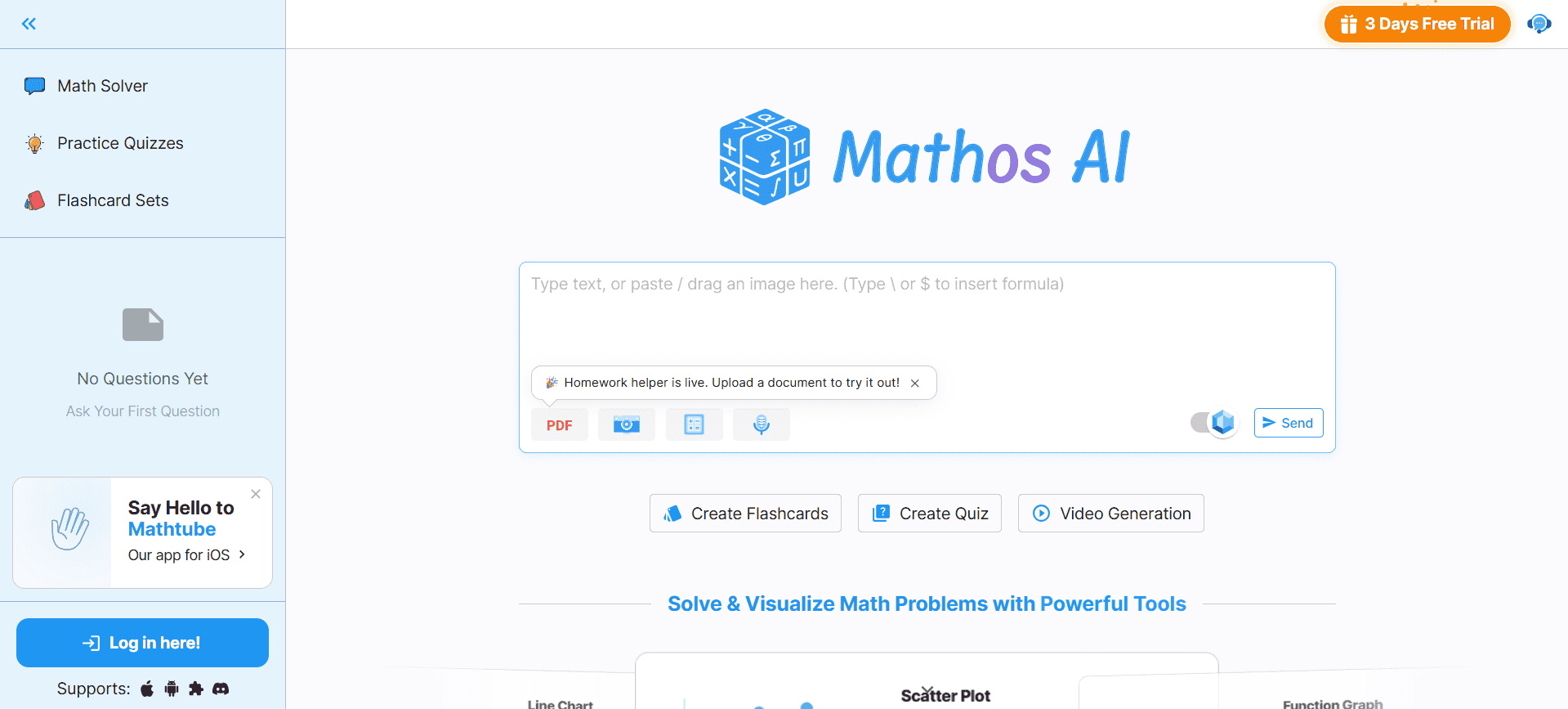 Mathos AI is positioned as a math solver plus tutor style tool. For engineering students, it can be useful when you want step by step explanations with visuals and not just the final answer. It can support typed questions, photo input, and sometimes interactive help for homework style problems. It fits students who want guided understanding, especially in topics like calculus, engineering math, and physics where small mistakes break the whole solution.