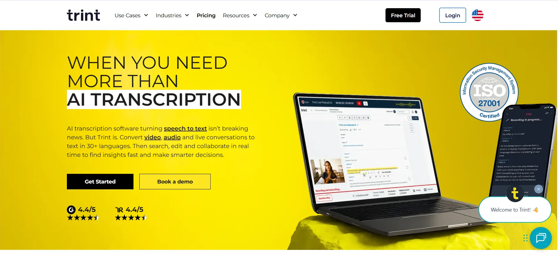 Trint is designed for content creators, journalists, and production teams who need more than just a transcript. It automatically transcribes in over 50 languages and comes with a powerful editor that syncs the audio or video with text. This makes it easy to review, trim, and create clips. It’s a favorite among media professionals because it offers more control and editing tools compared to Otter.ai.