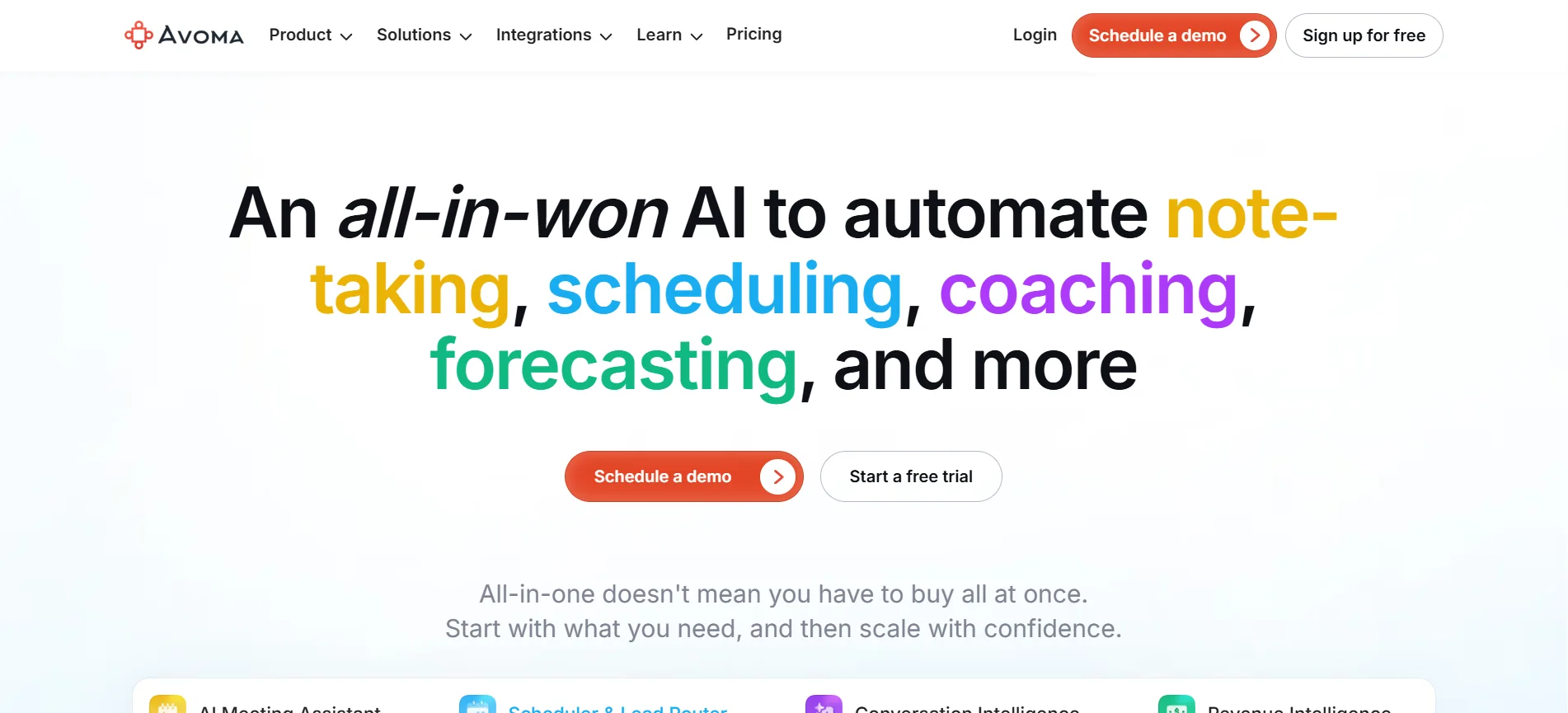Avoma | Real-time note-taking, call insights, coaching tools, and deep CRM integrations. Focuses heavily on analytics and team performance. | Web, Chrome extension | Sales, customer success, leadership coaching | Startup: $19/month Organization: $29/month Enterprise from $39/month |