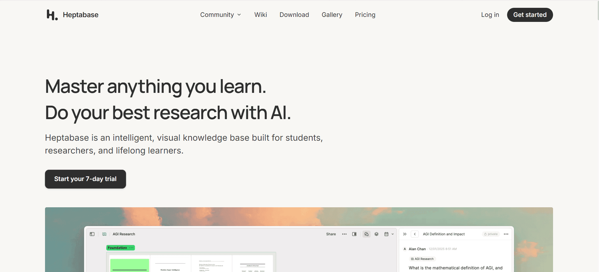 Heptabase is built for people who learn by seeing ideas laid out visually. It combines whiteboards with a card-based note system, so you can place concepts on a canvas and connect them like a mind map. This is great when you are studying complex topics or doing deep research.