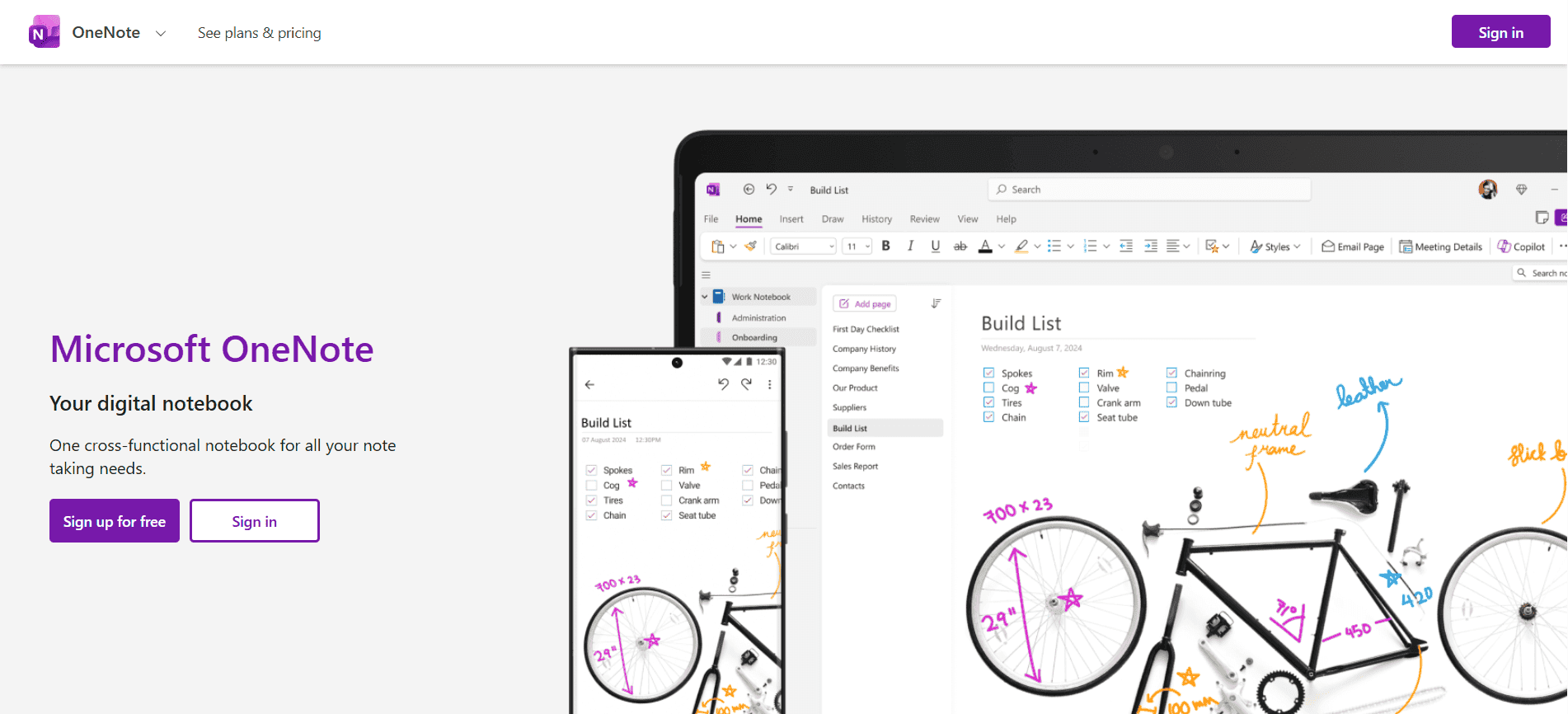Its strength lies in Microsoft 365 integration. Meeting notes sync with Teams, documents connect with Word and Excel, and everything stores on OneDrive. For students and professionals already using Microsoft tools, OneNote becomes a seamless knowledge hub that fits into daily workflows.