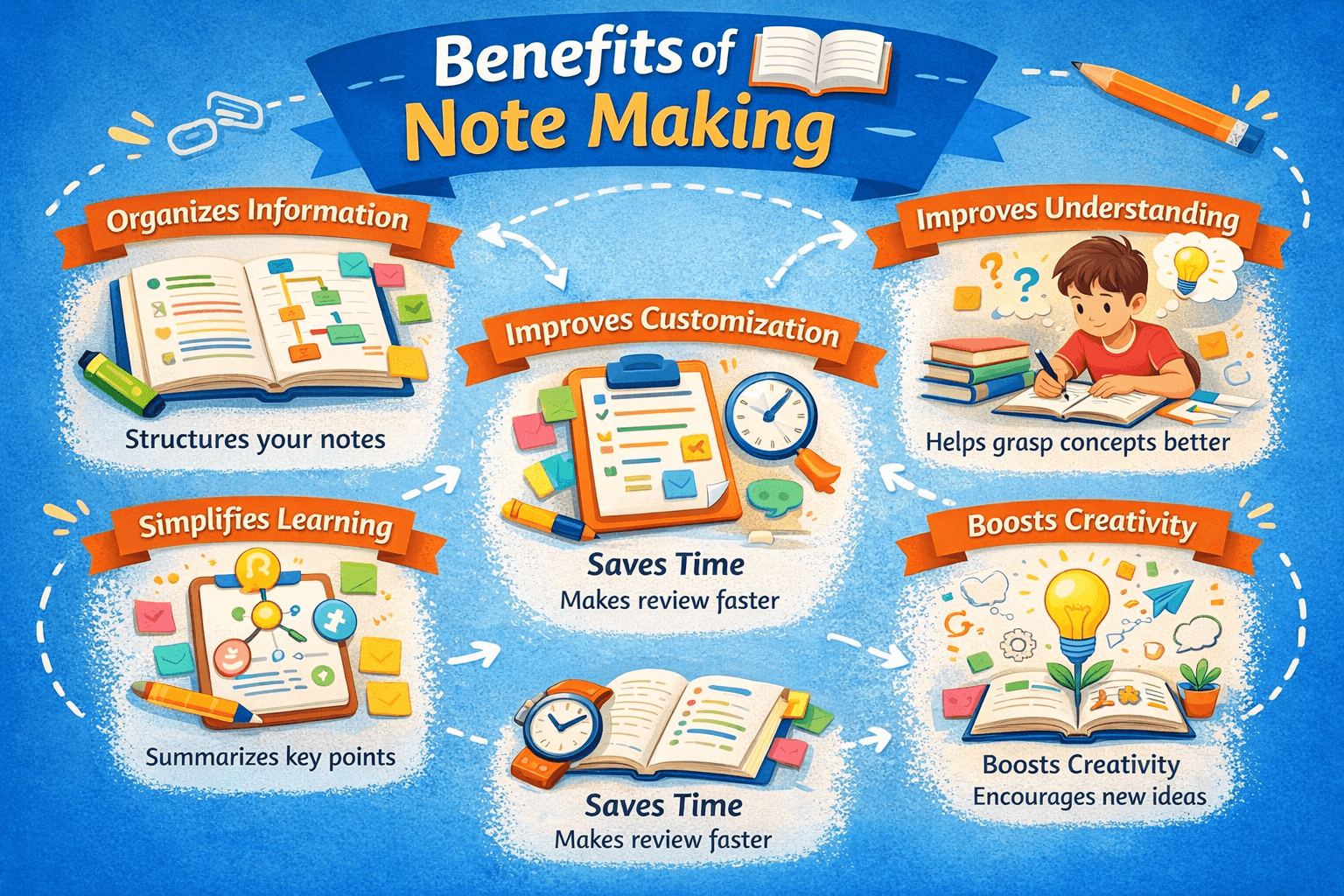 We hope this blog helped you understand how both note taking and note making work. They may seem similar, but each one plays its own role in how you learn and remember things. Whether you're sitting in class or revising at home, knowing when to use which method can make your study time more useful. Try them out and see what works best for you.