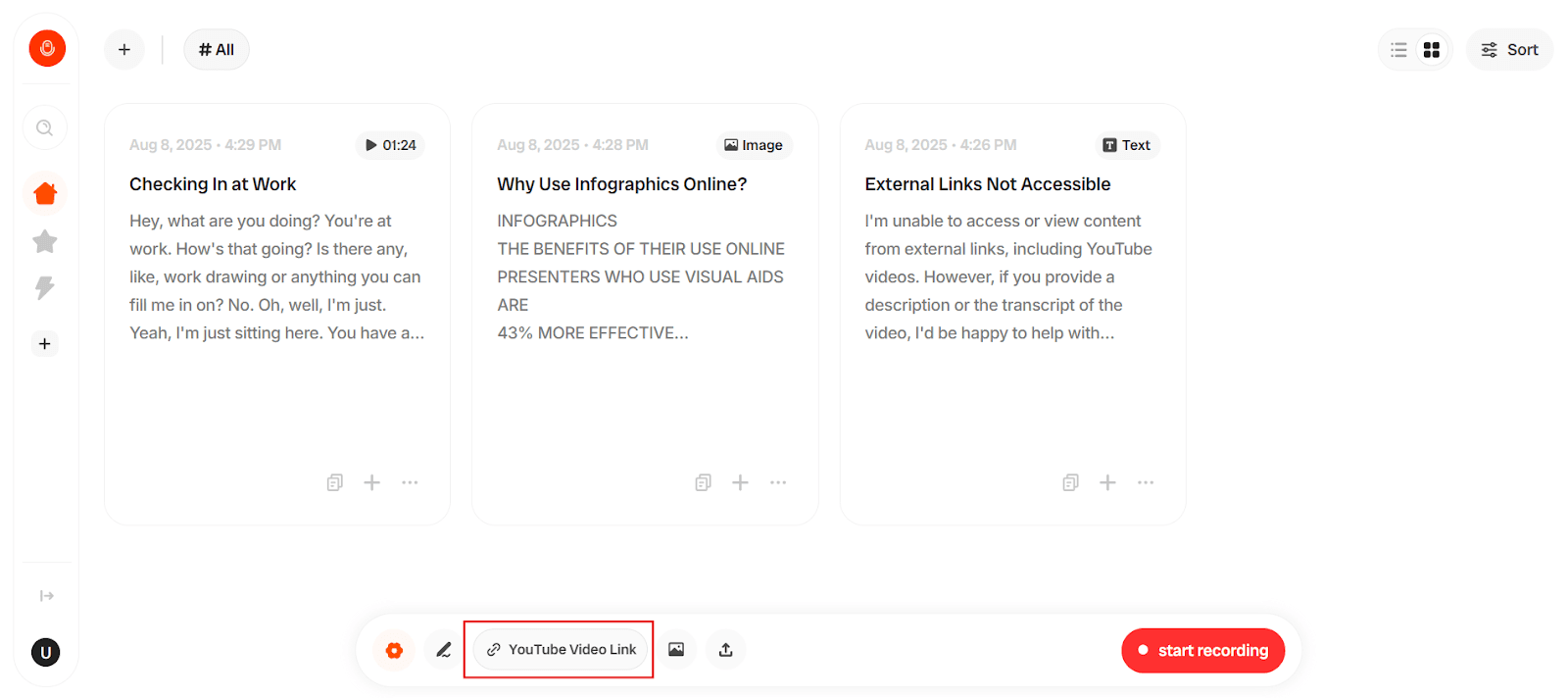 Works With Any YouTube Video: Even if a YouTube video has no subtitles, poor auto-captions, or multiple speakers, Audionotes can still transcribe a YouTube video to text with clarity.