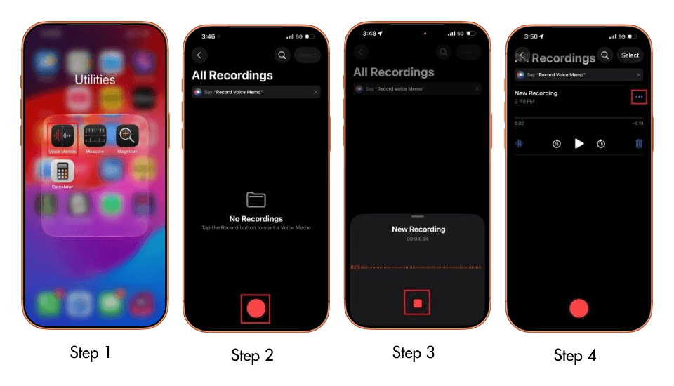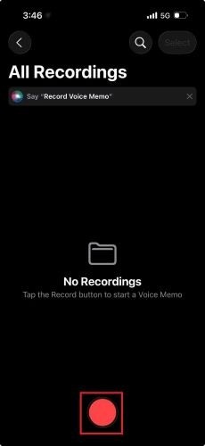 Open the Voice Memos app and tap the red Record button.