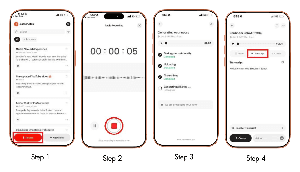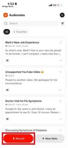 If Apple’s dictation feels inconsistent or limited, Audionotes offers a more accurate and flexible voice-to-text experience. The app helps you convert voice notes, recordings, and spoken ideas into clean, structured text.