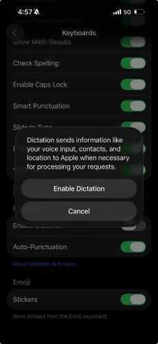 Toggle off Enable Dictation.