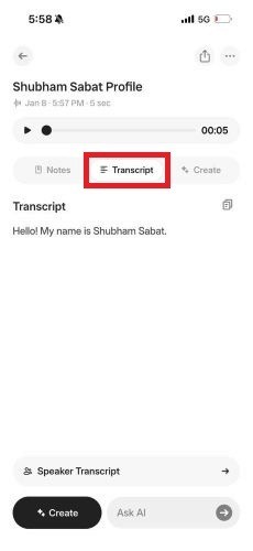 Step 3: Click on transcript to get the transcript of your audio