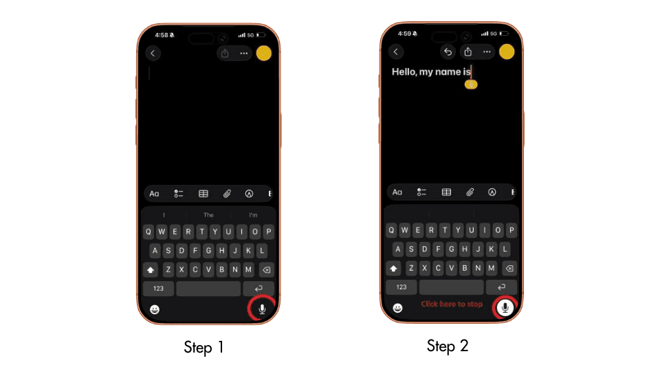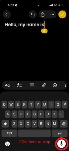 Tap the microphone icon and begin speaking clearly. Your words will appear in real time.