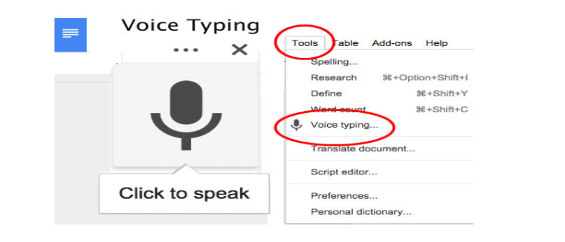 Google Docs Voice Typing