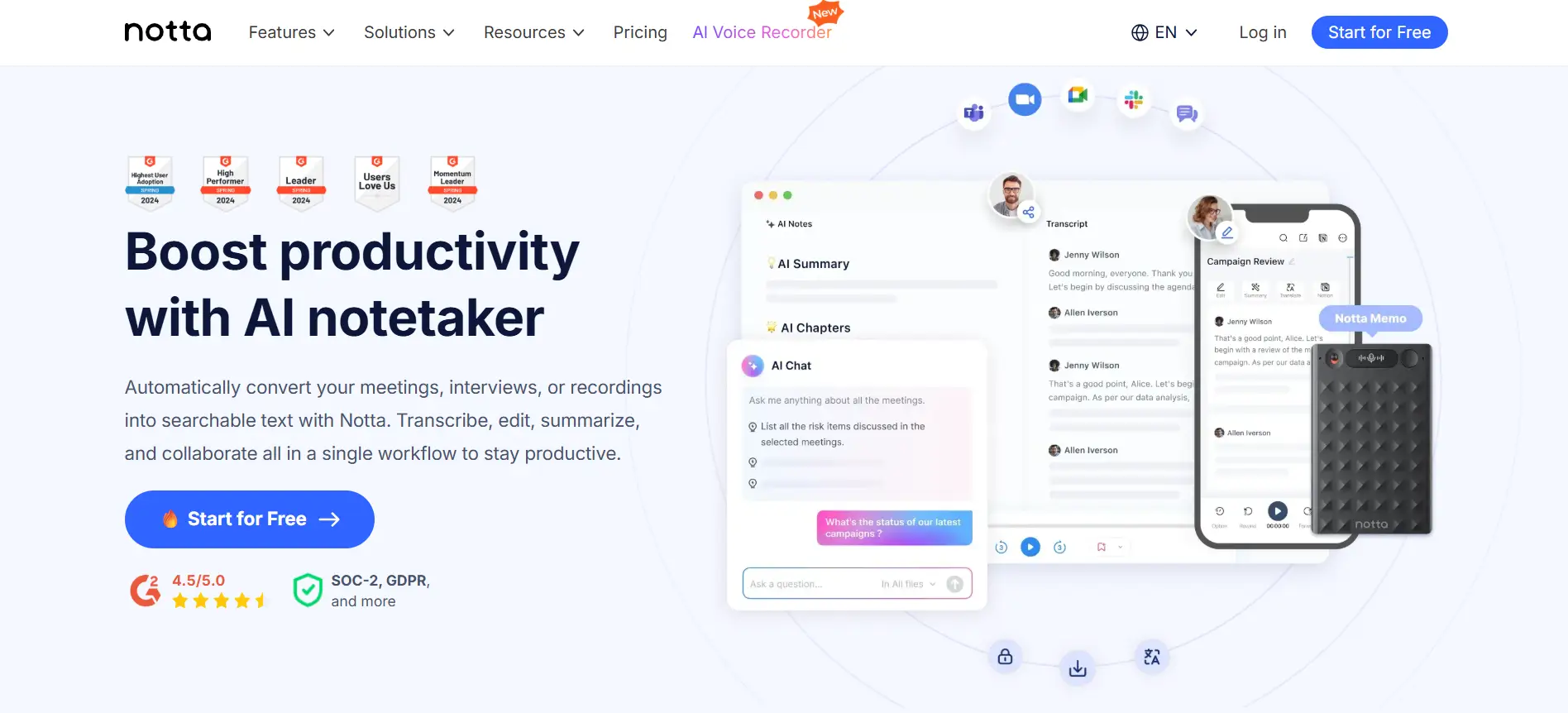 If you use Google Docs, Microsoft Word, or CRM tools like Salesforce, choose an app that connects well with them. This saves you from copying and pasting your notes every time and keeps your work organized in one place.