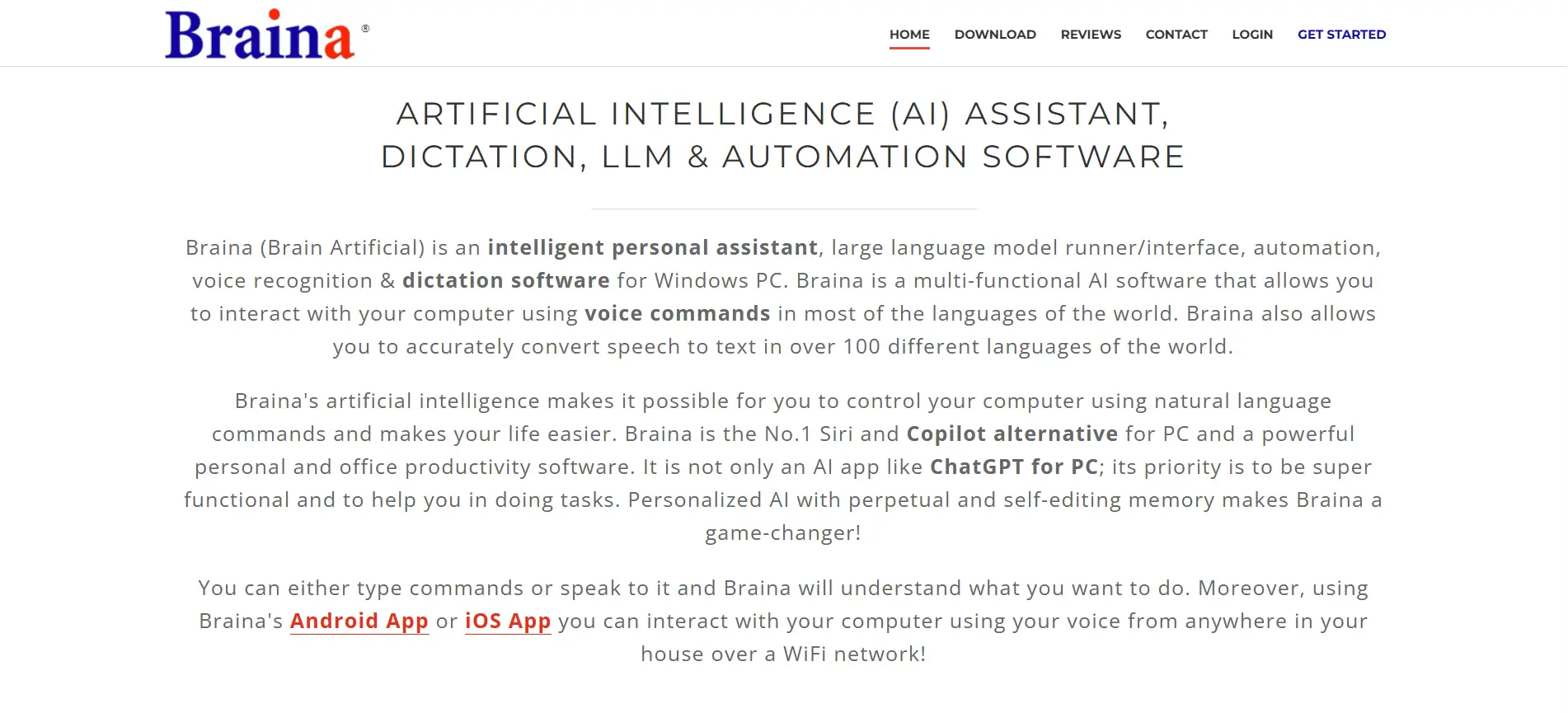 Braina | Windows, companion mobile mic app | Free Lite; Pro $79/year; Lifetime $199 | 100+ languages | Business users, researchers |