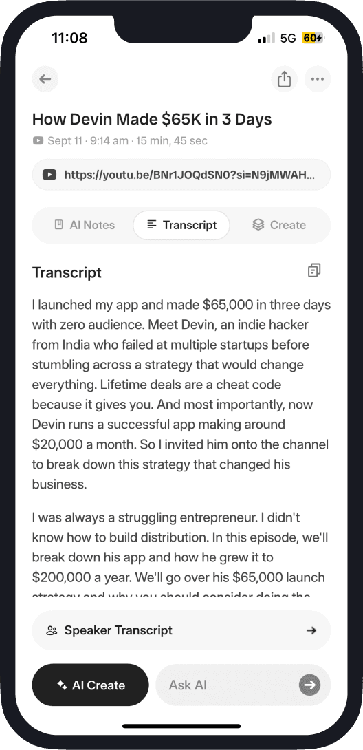 AI-generated summaries highlight key ideas, action points, and takeaways in seconds.
